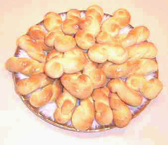 Πλάθουμε τα κουλουράκια και ψήνουμε στους 250° C .