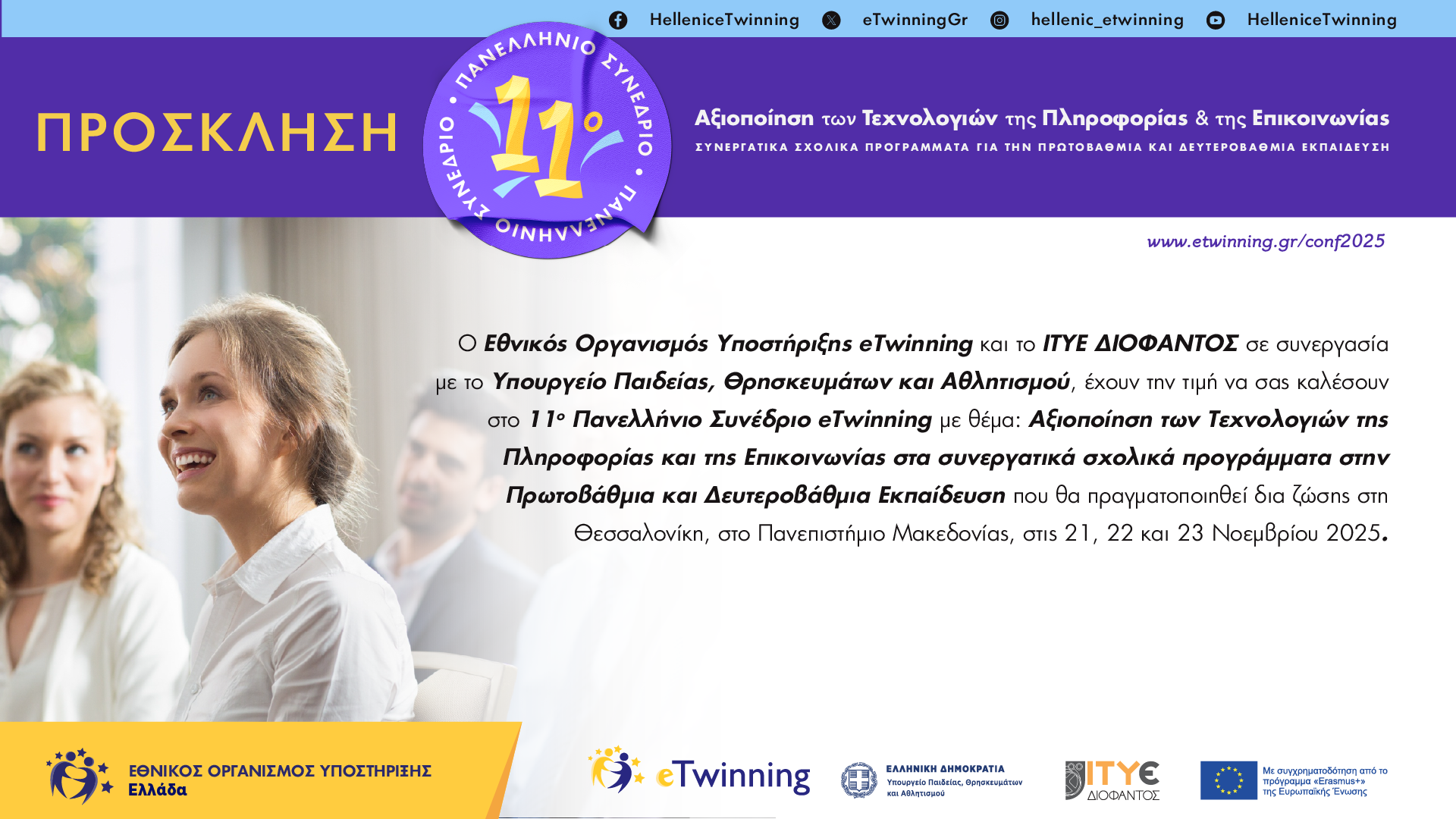 Δικτυακός τόπος: https://www.etwinning.gr/conf2025. Θεσσαλονίκη, 21, 22, 23 Νοεμβρίου 2025